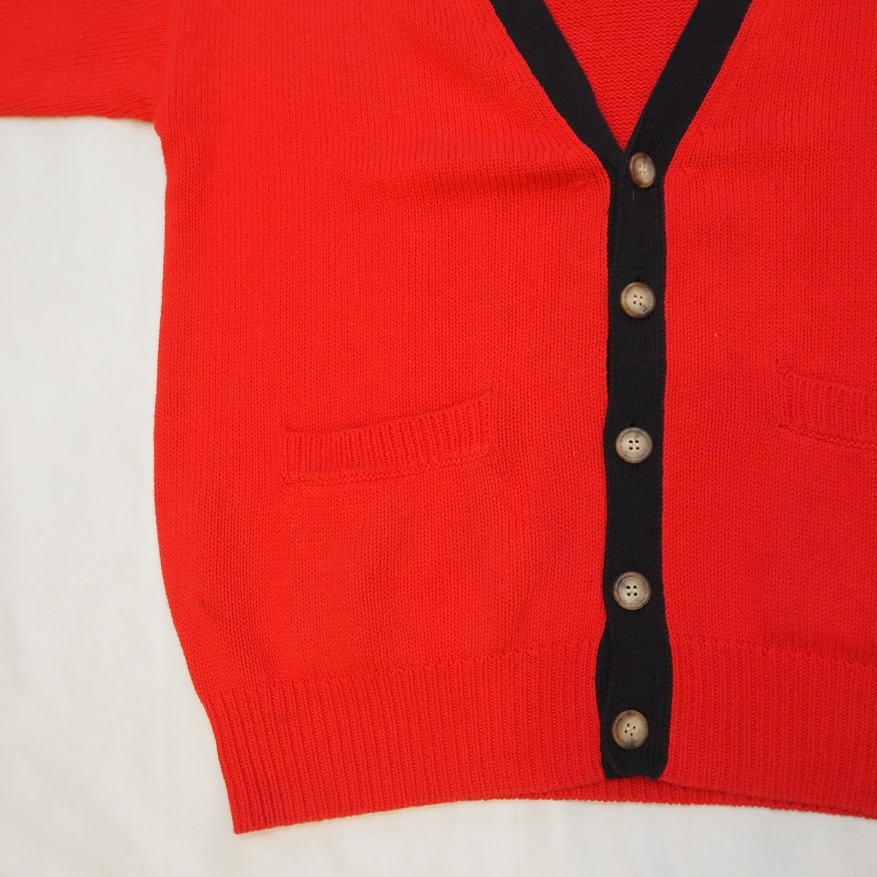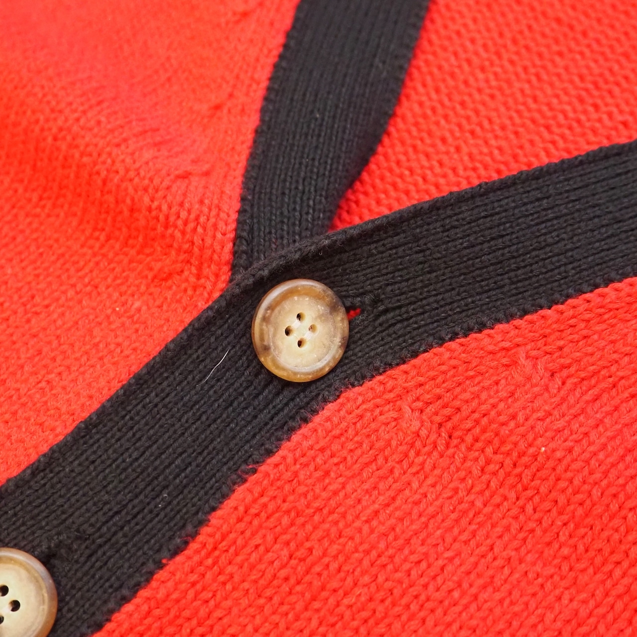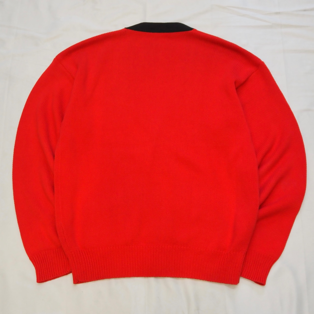 90’s コットンニットカーディガン レッド×ブラック