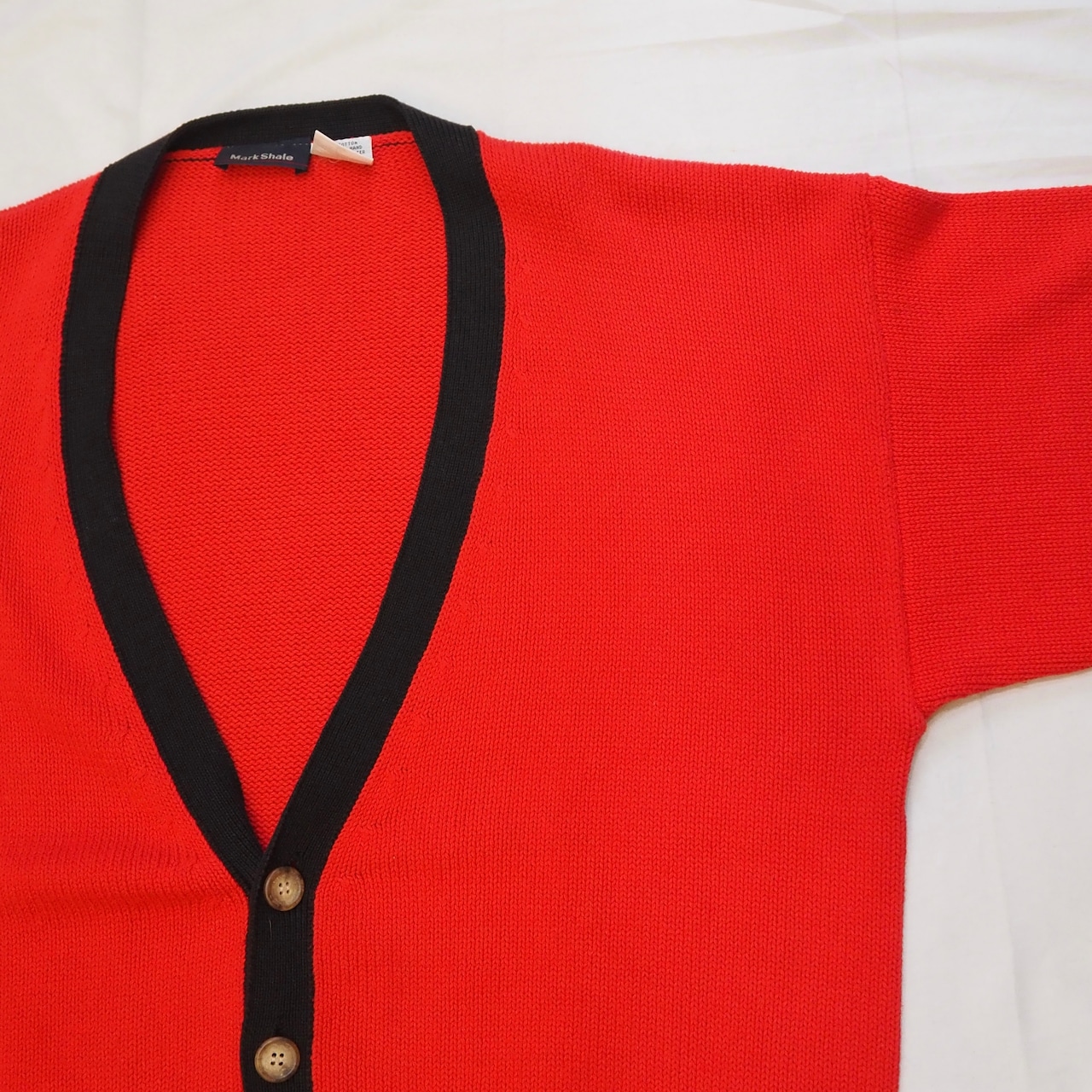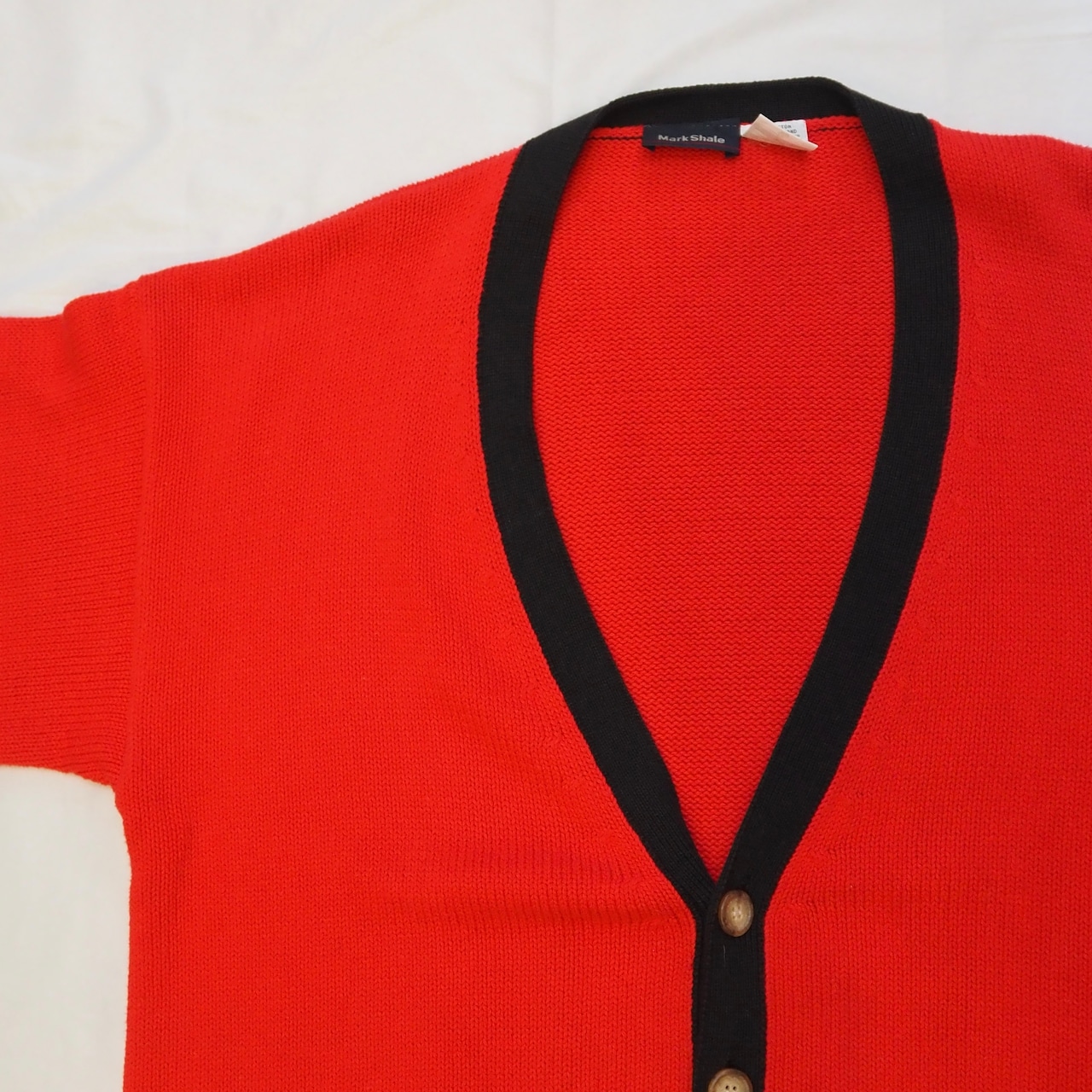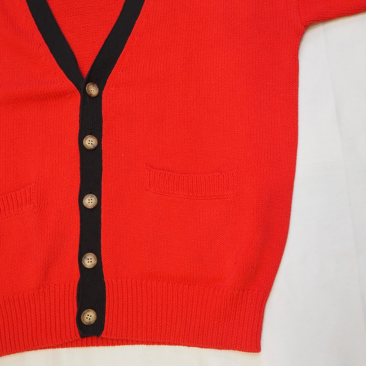 90’s コットンニットカーディガン レッド×ブラック