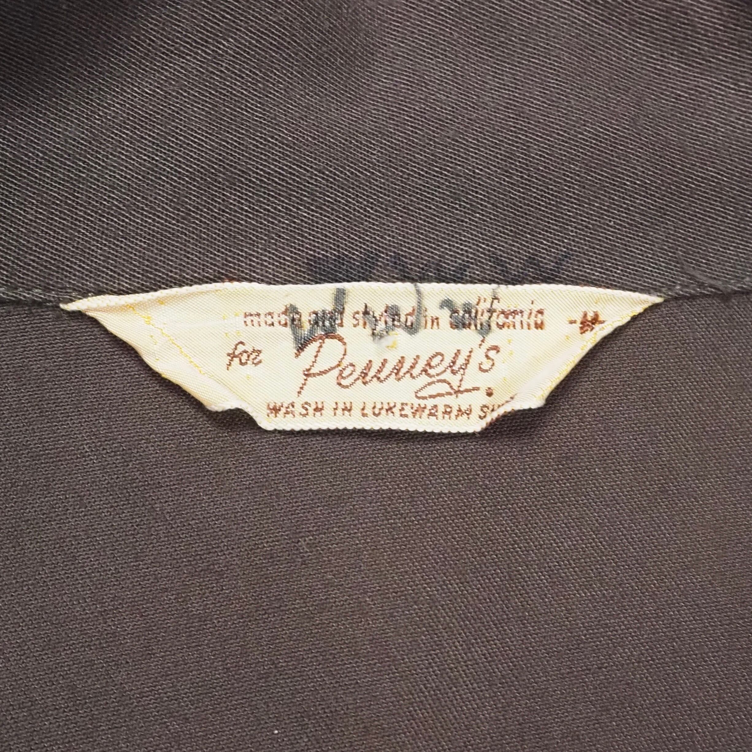 首元は開襟仕様のプルオーバーシャツ。50年代頃のペニーズのタグがつきます。