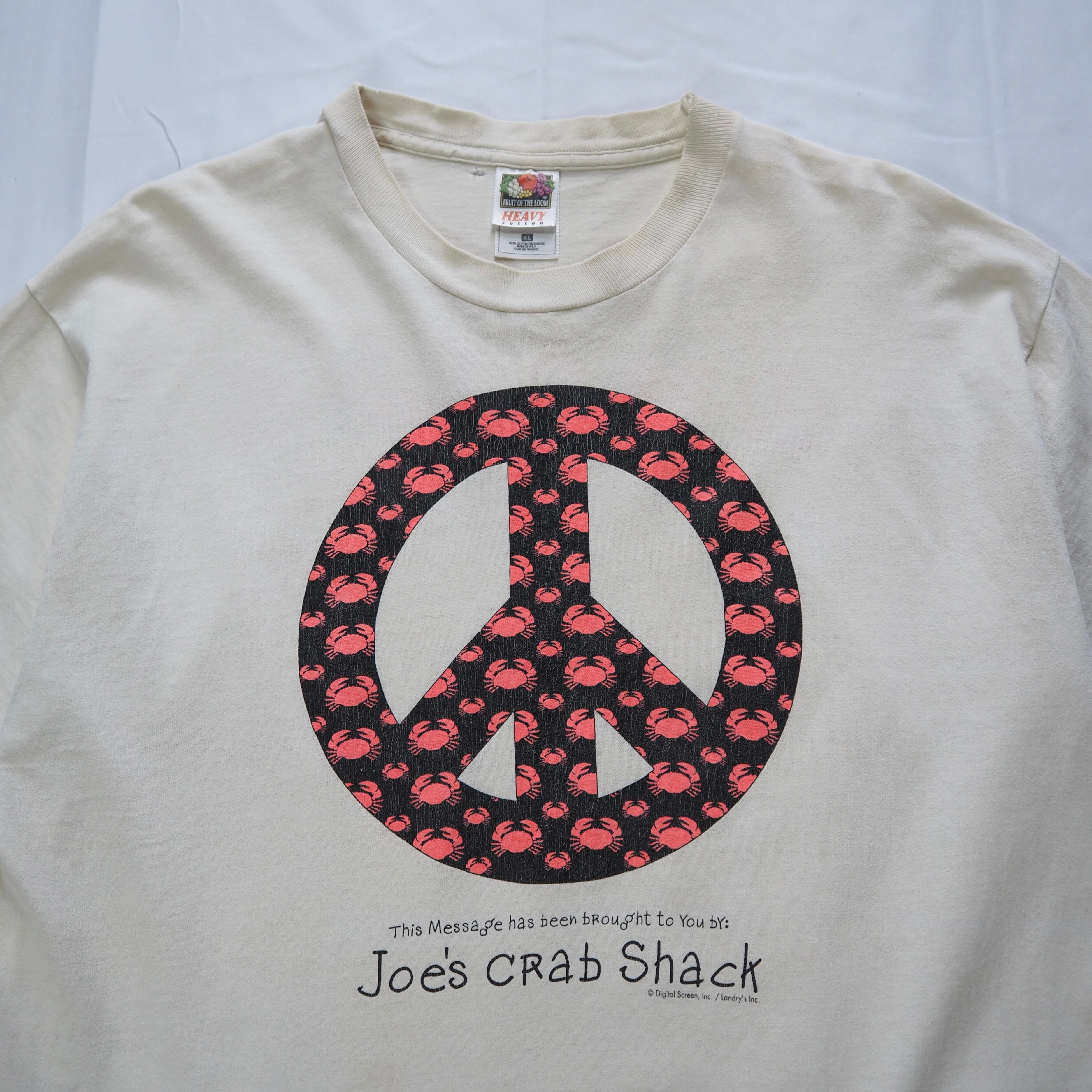 カニ料理を出すお店のものと思われるプリントTシャツです。カニデザインのピースマークがユニーク良いです◎◎