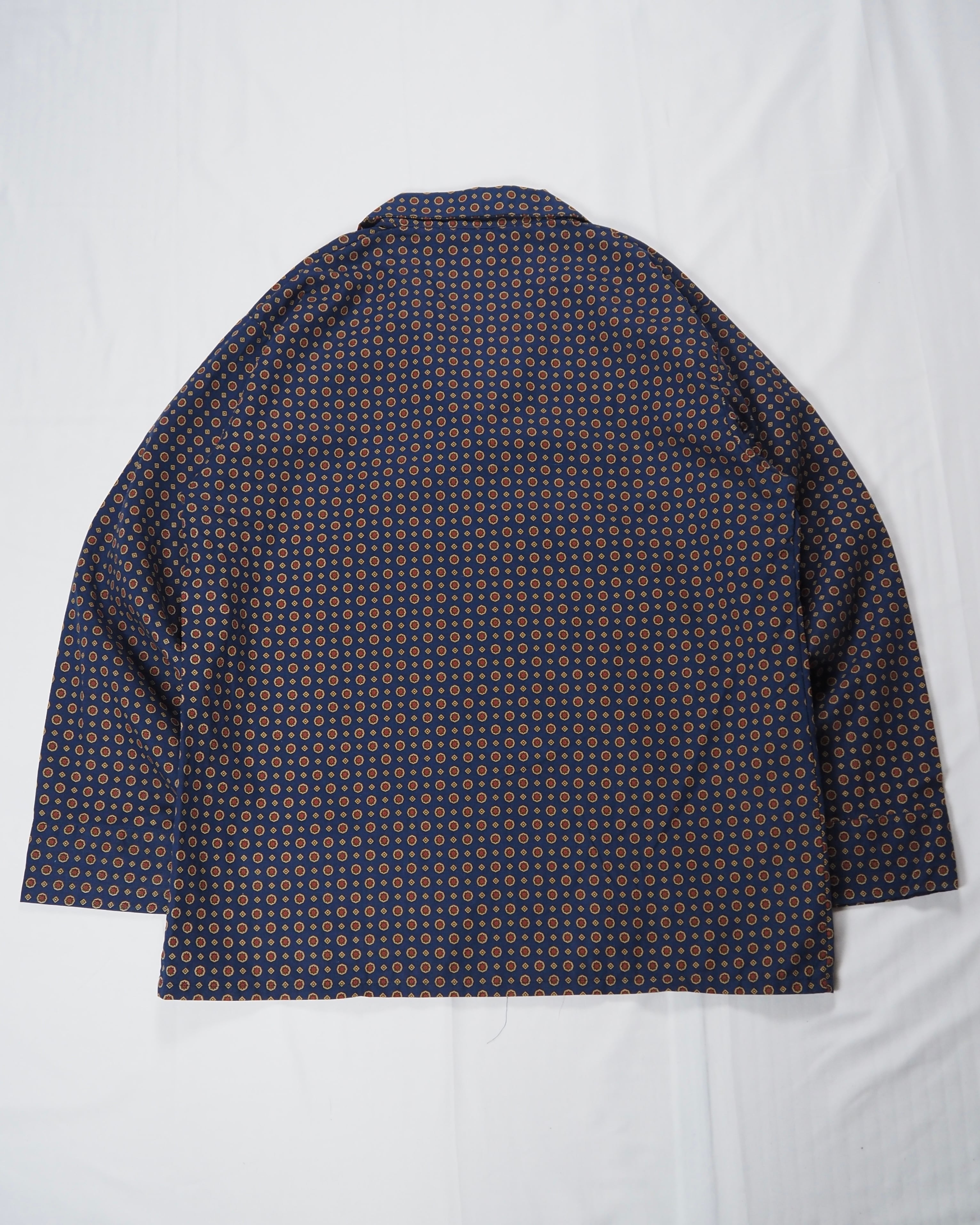 パジャマシャツなので一般的なシャツよりも袖幅が広い等のユニークなデザインが特徴的。合わせを考えるのが楽しい一着です◎