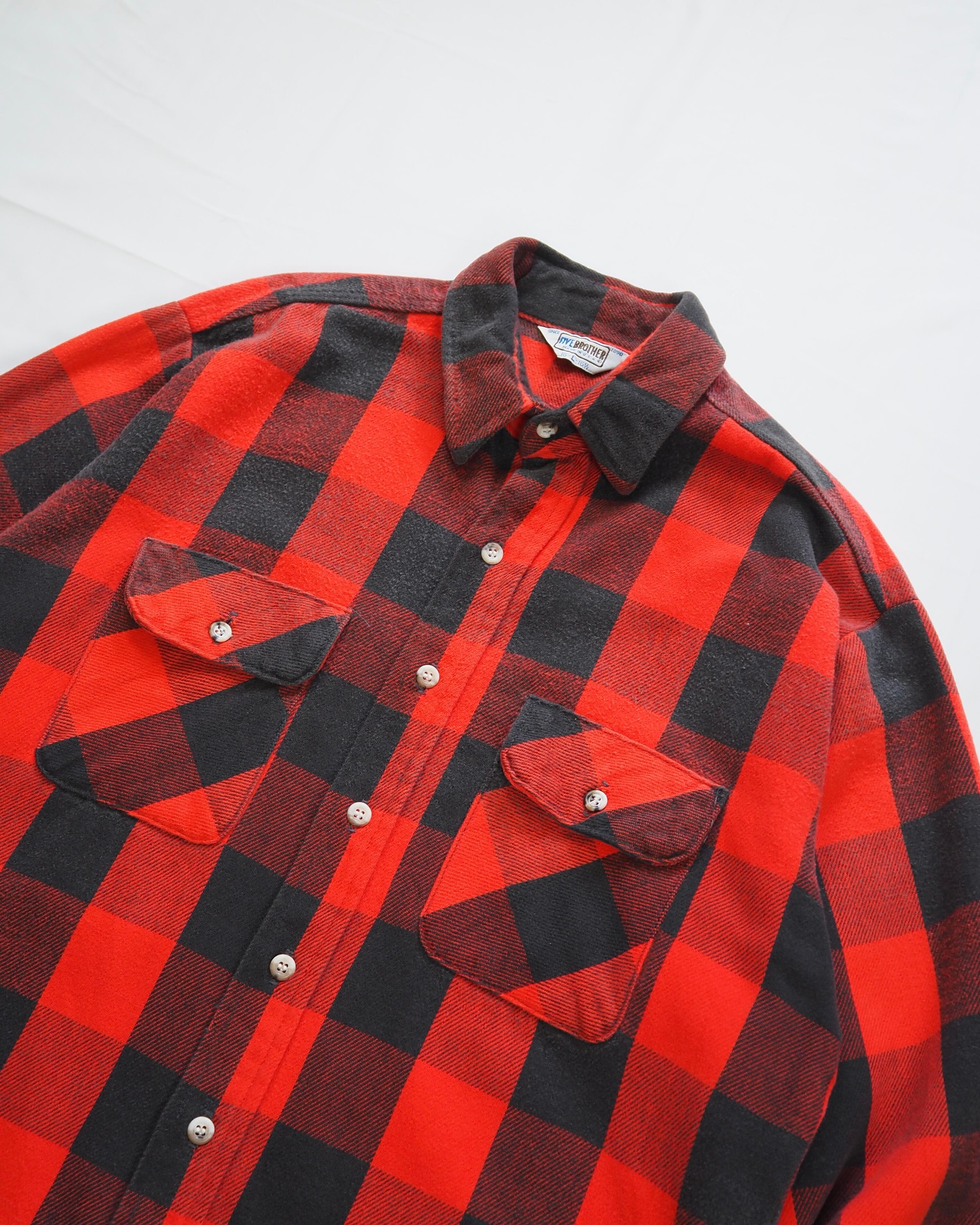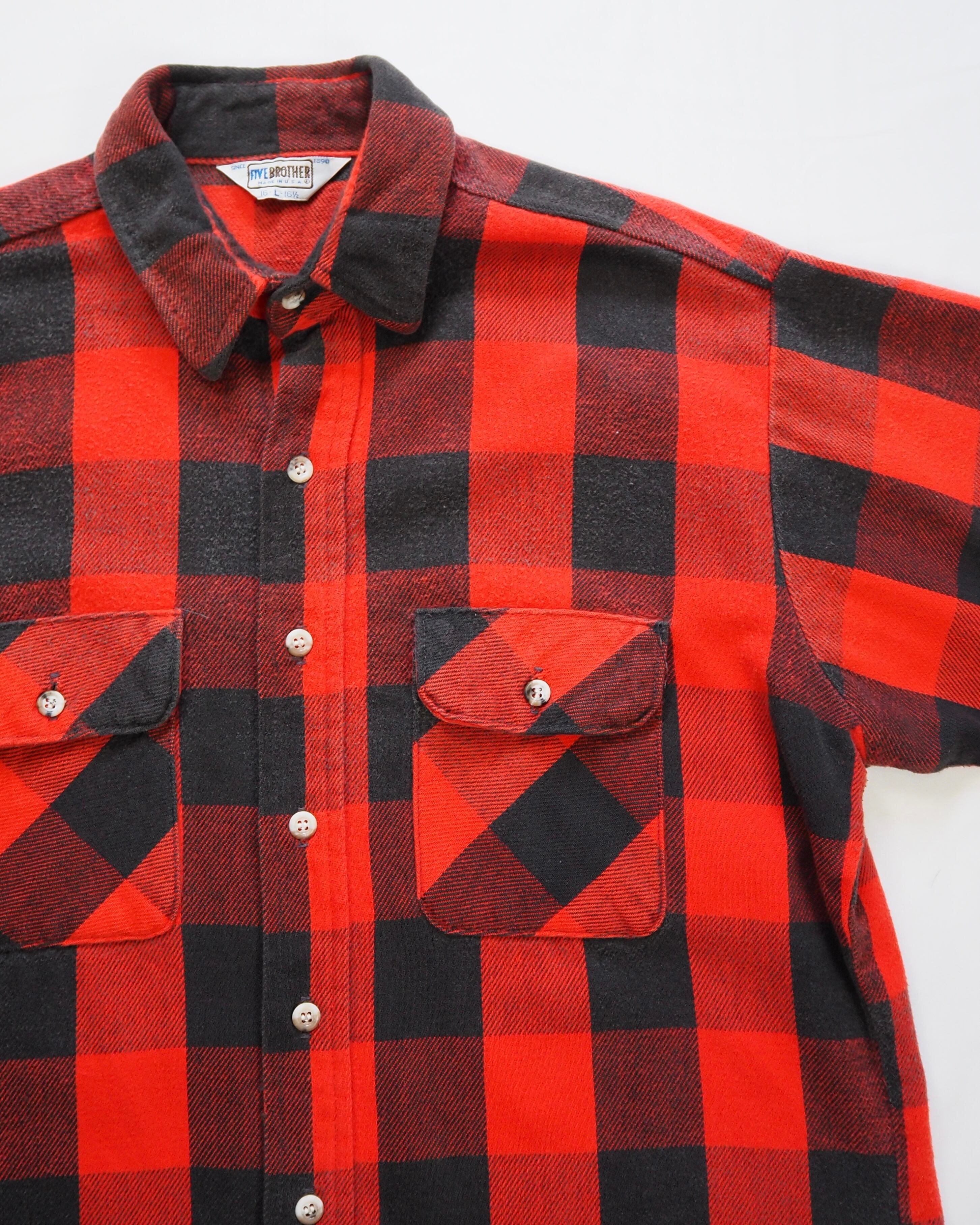 【5/6(水) 20:00入荷】80’s Fivebrother ヘヴィフランネルシャツ ブラック×レッド Mサイズ