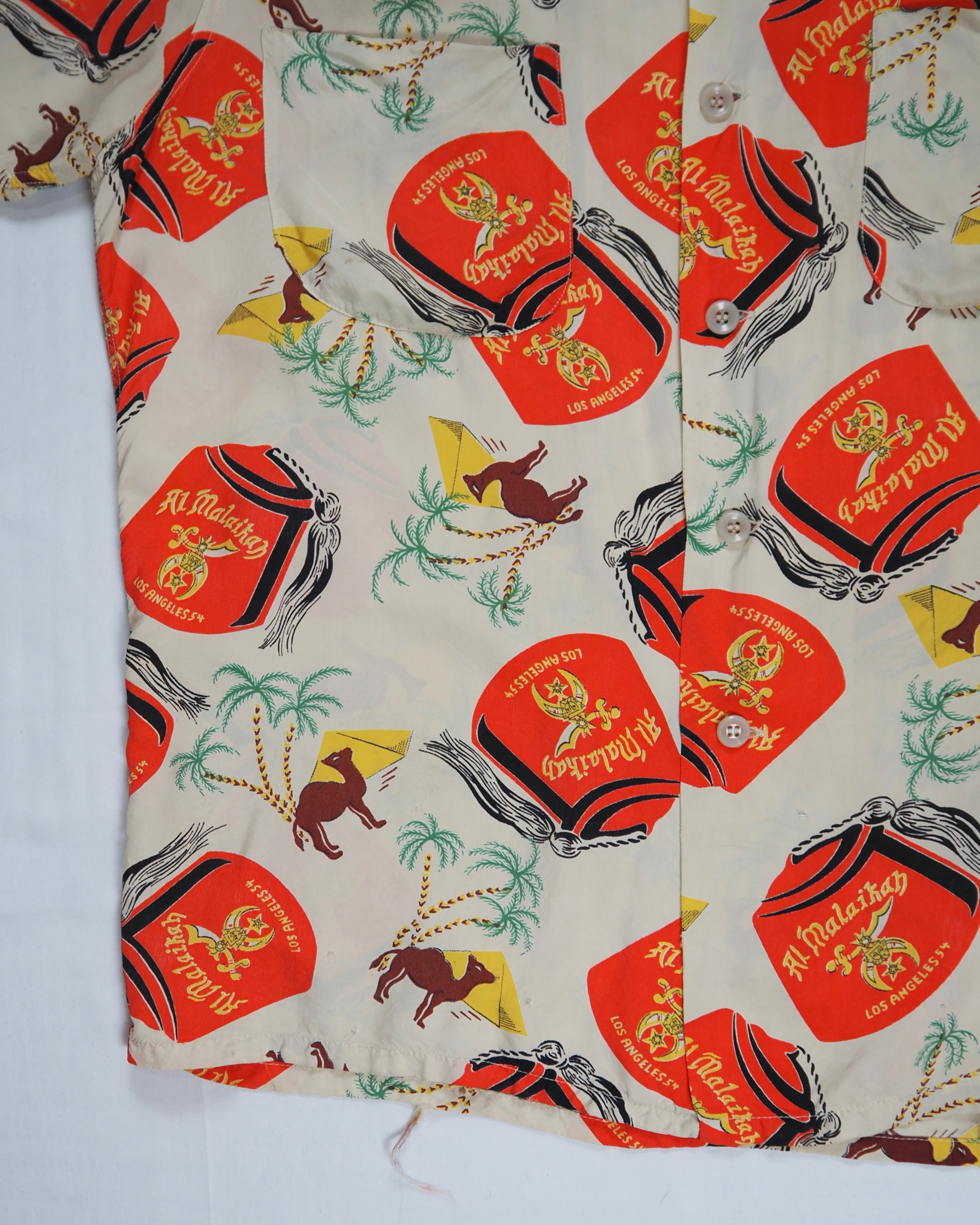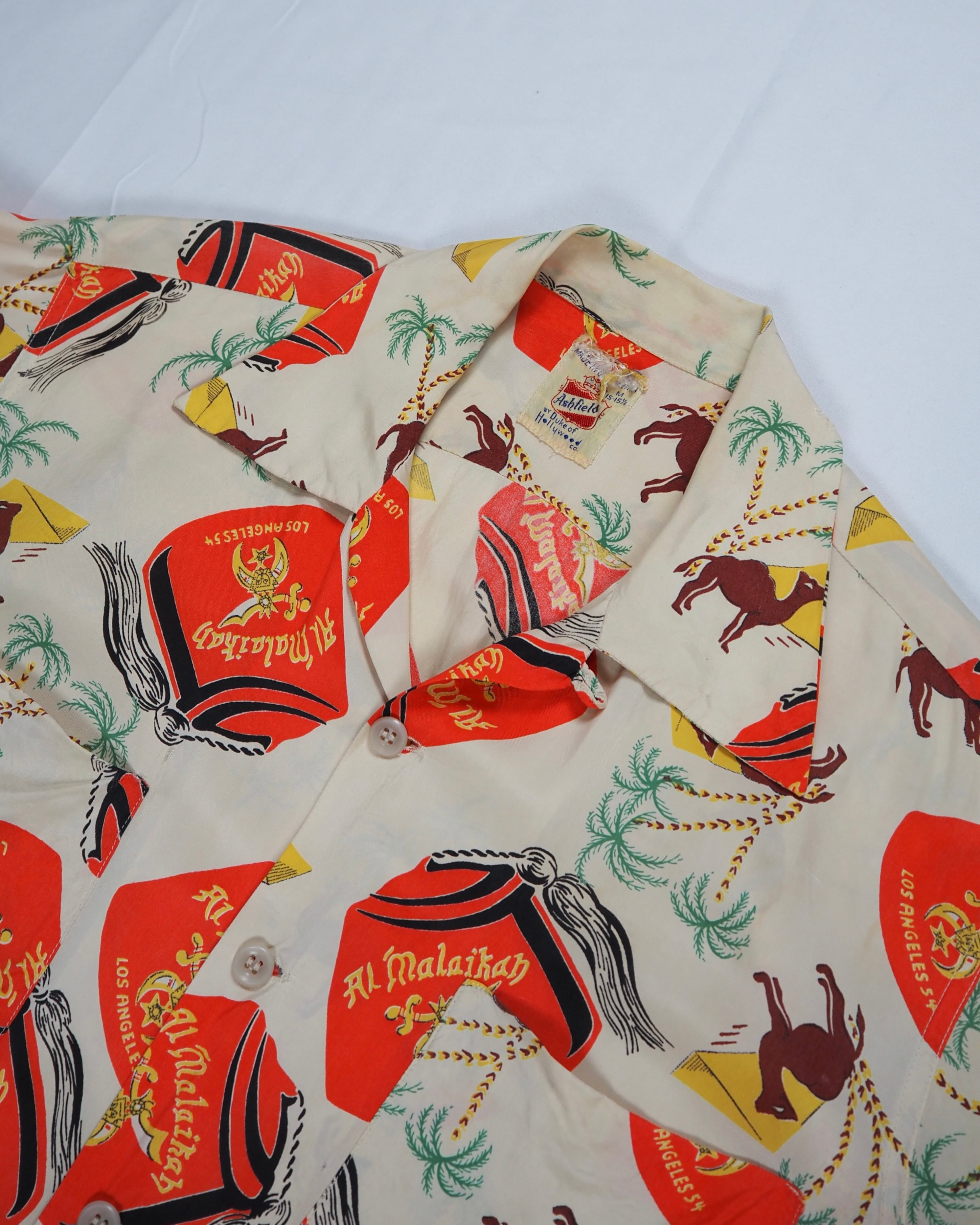50年代に生産されたデュークオブハリウッドのレーヨンハワイアンシャツ。