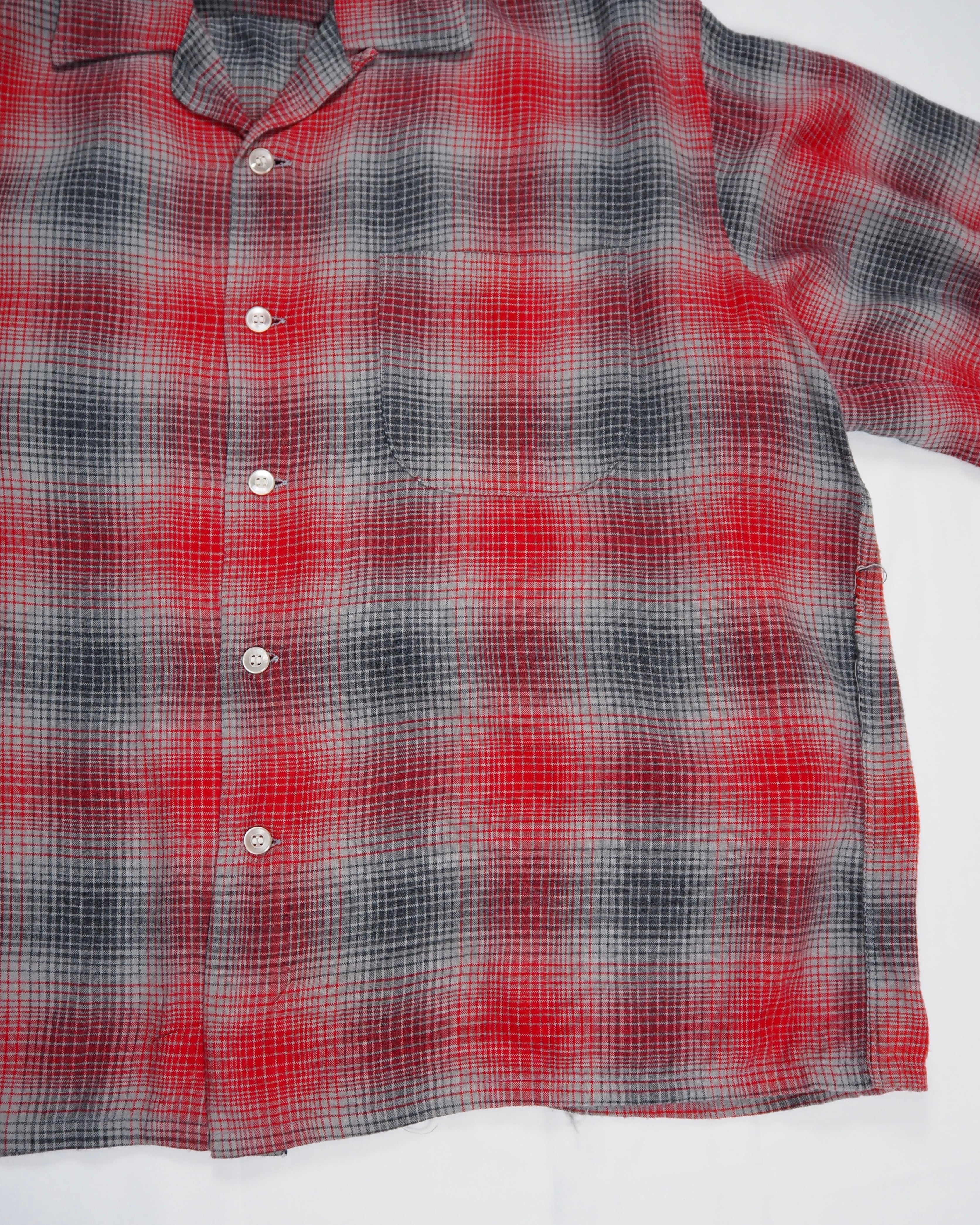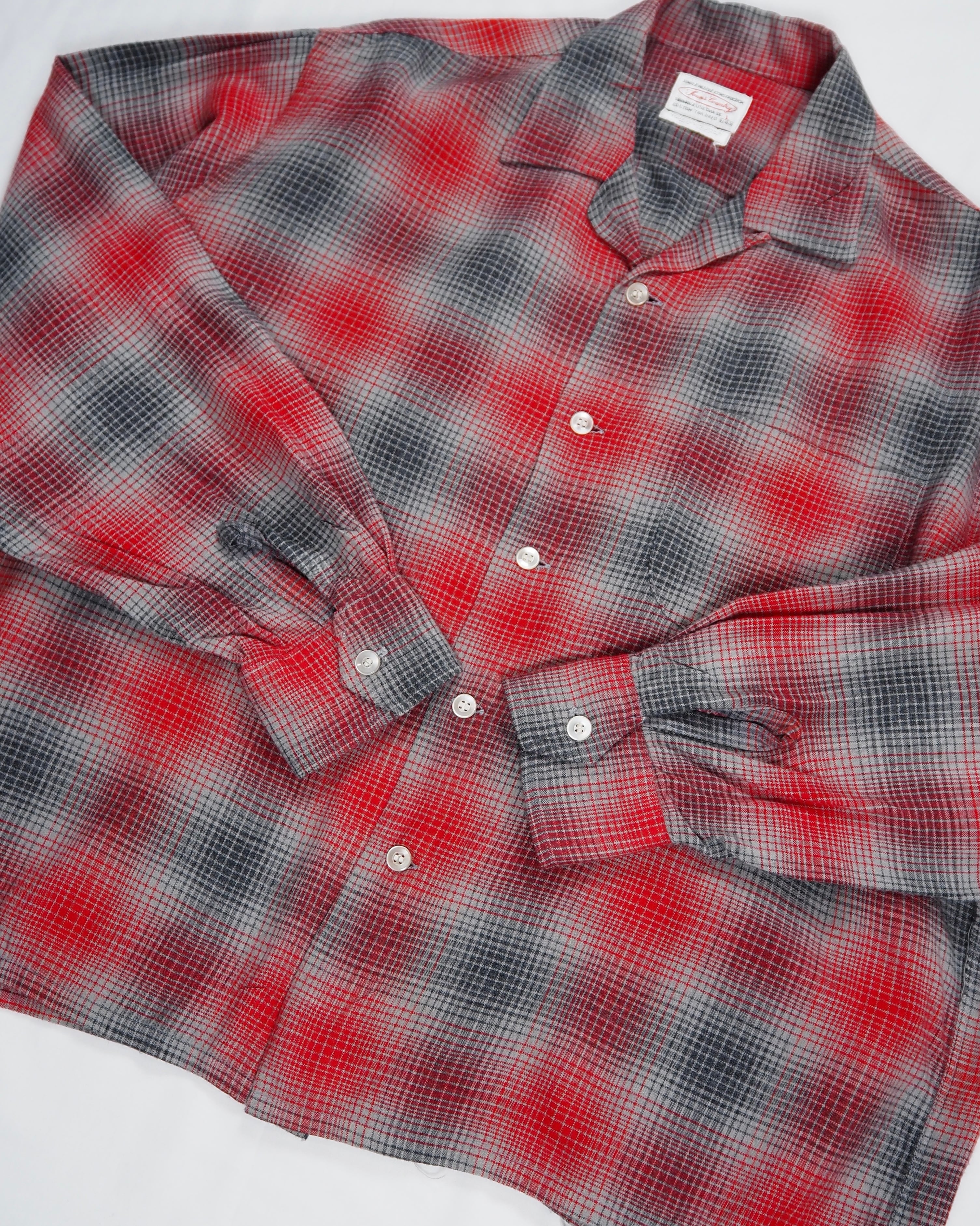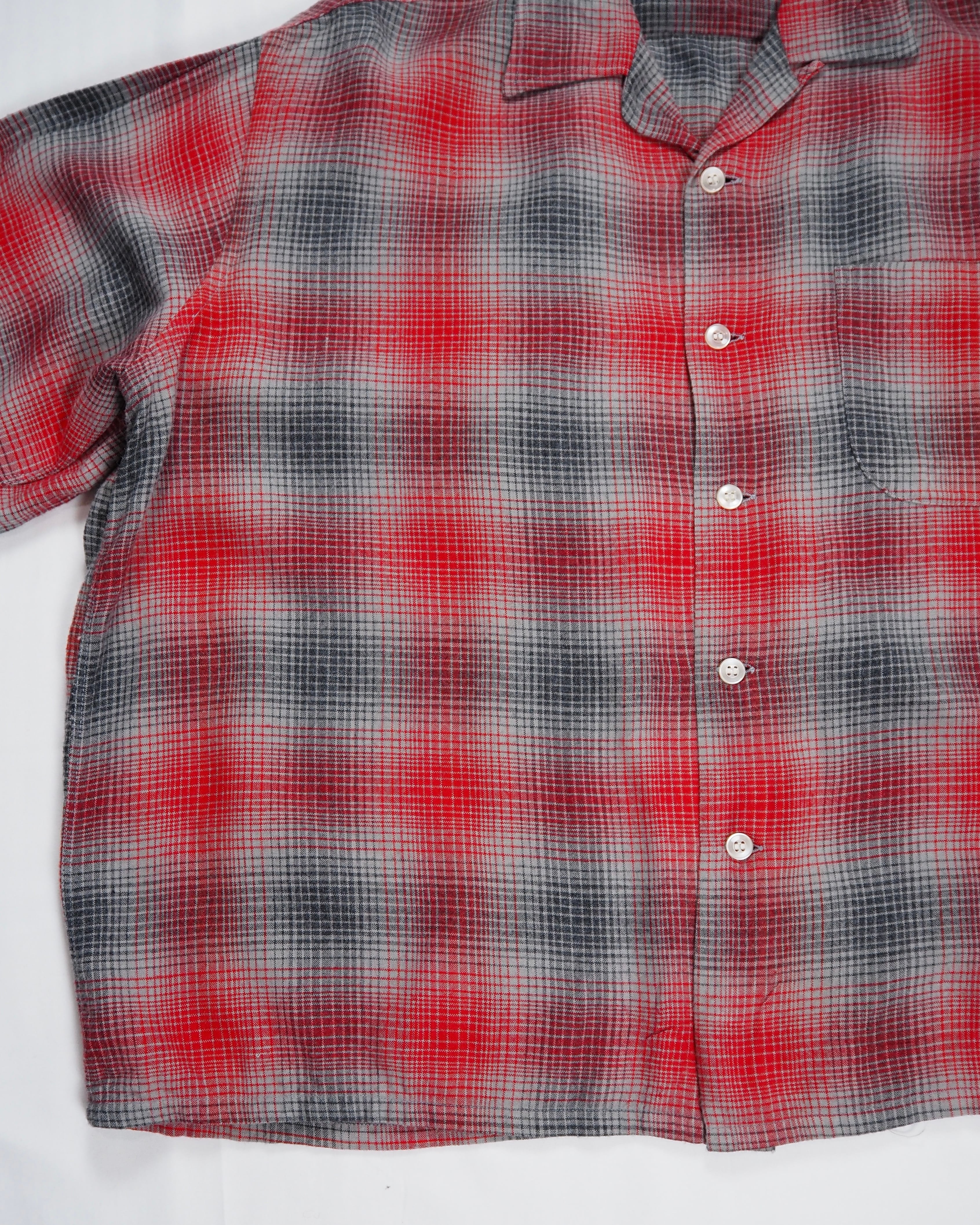 【5/6(水) 20:00入荷】60’s レーヨンオンブレシャツ レッド×グレー