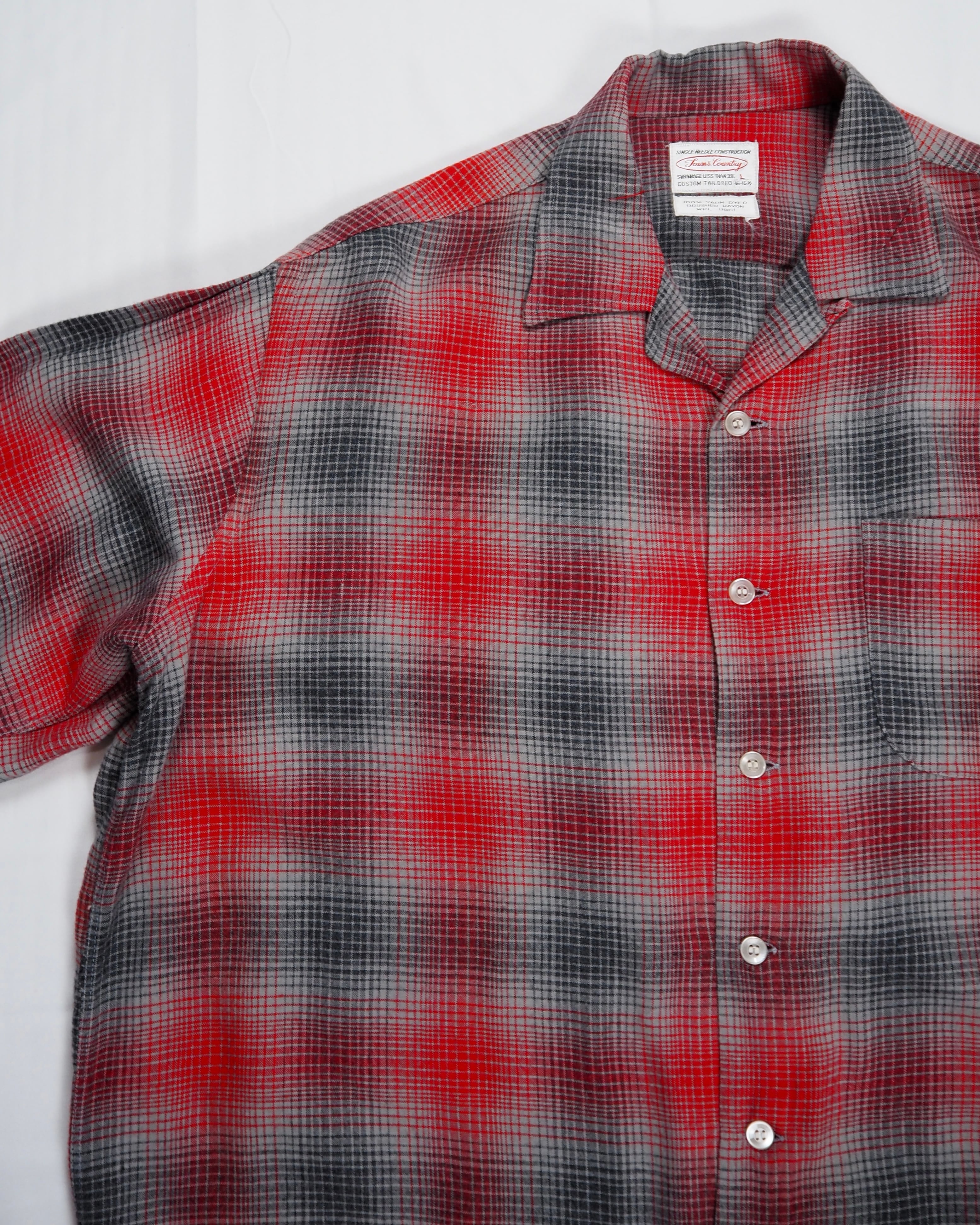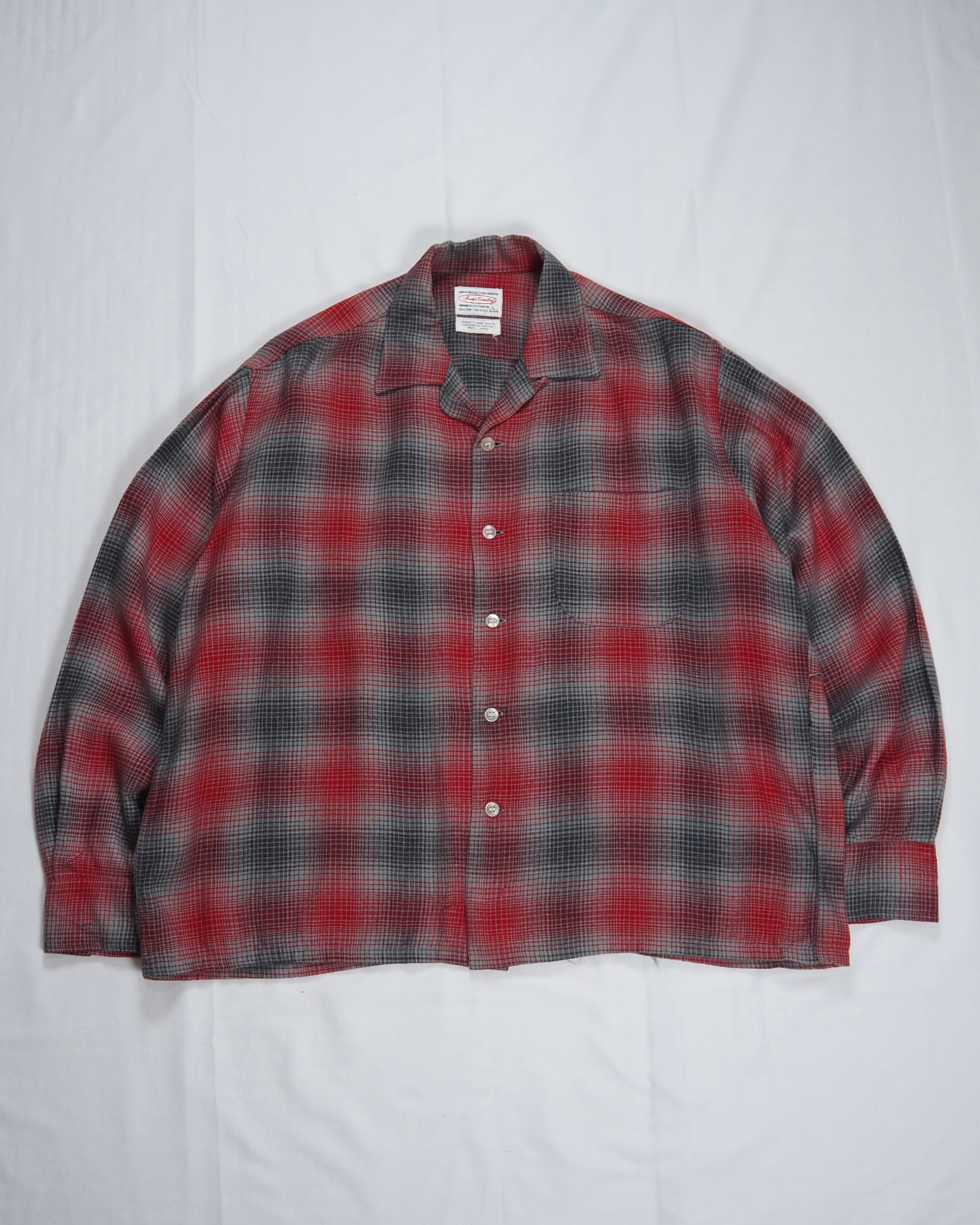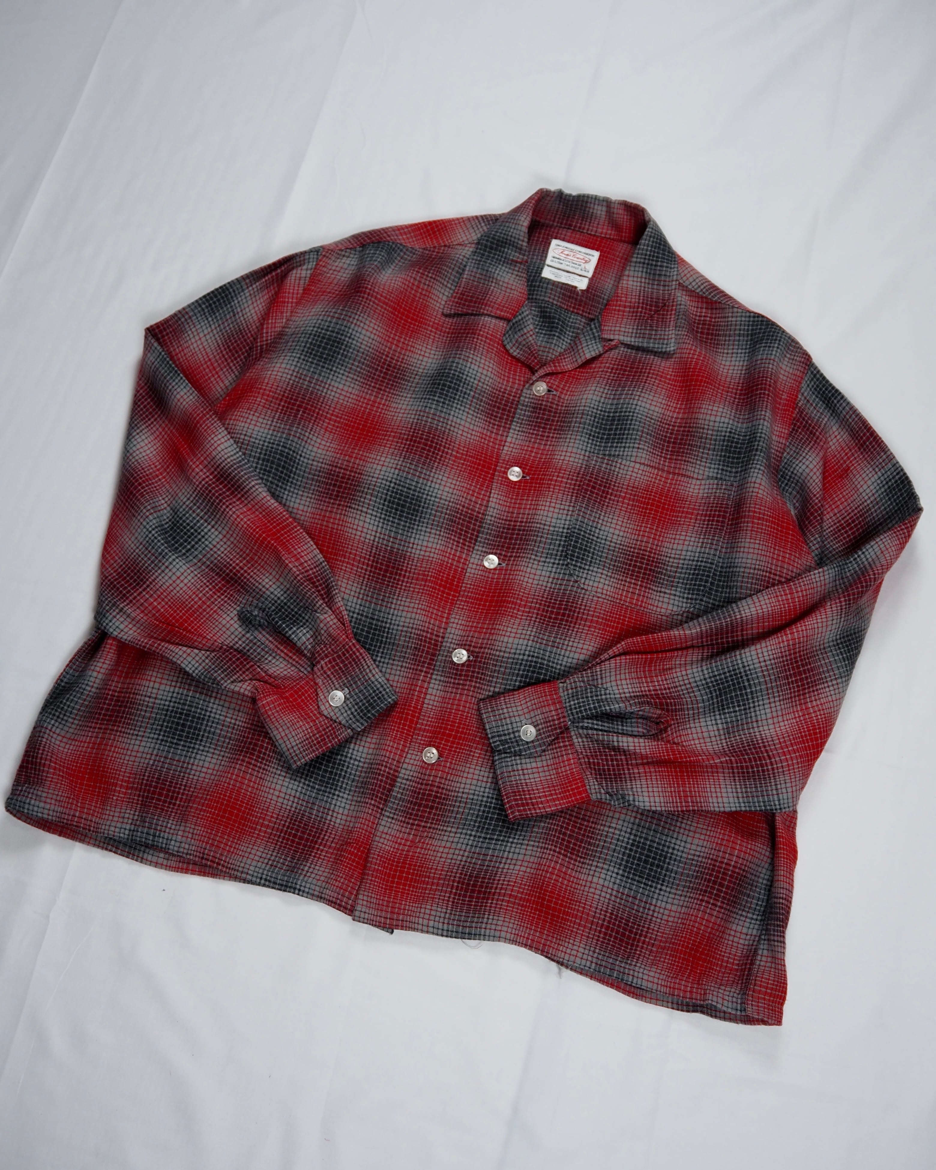 【5/6(水) 20:00入荷】60’s レーヨンオンブレシャツ レッド×グレー