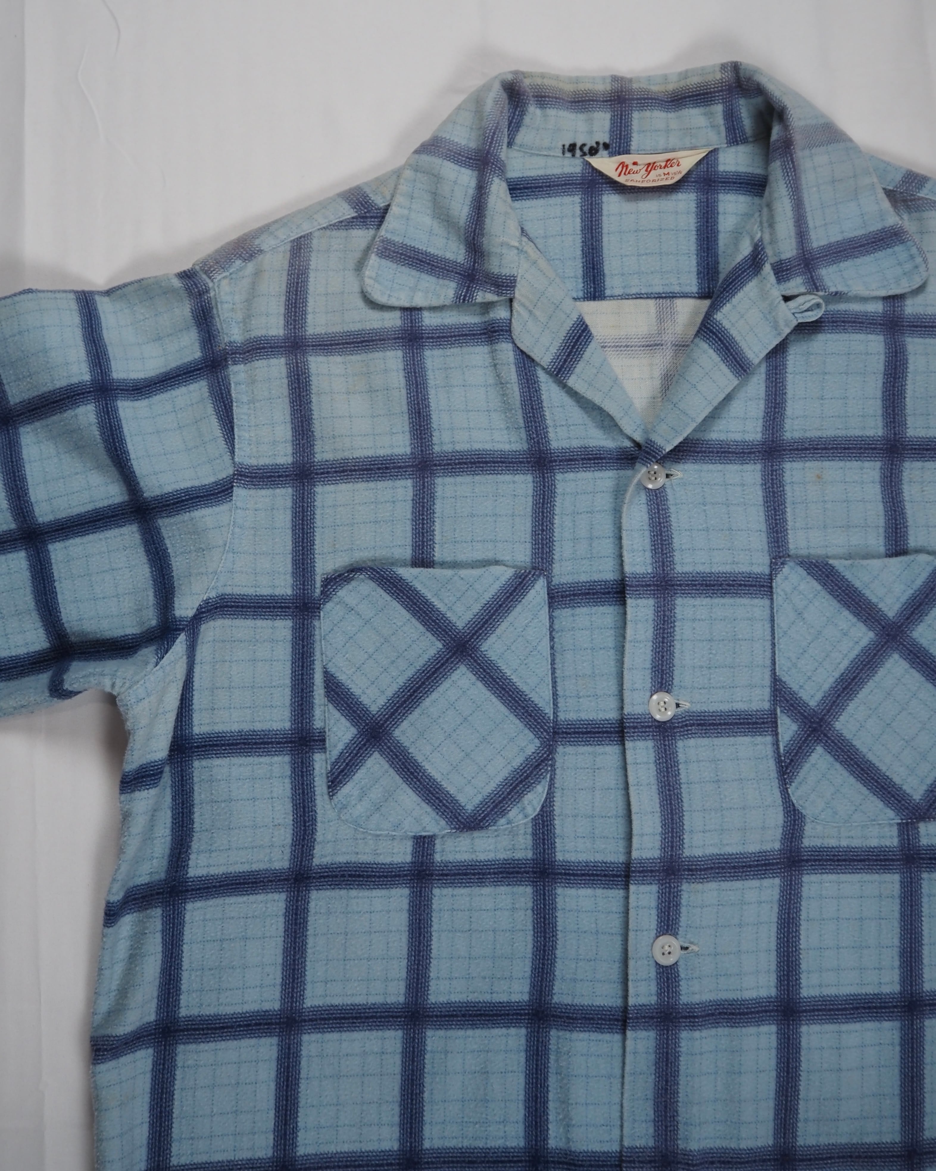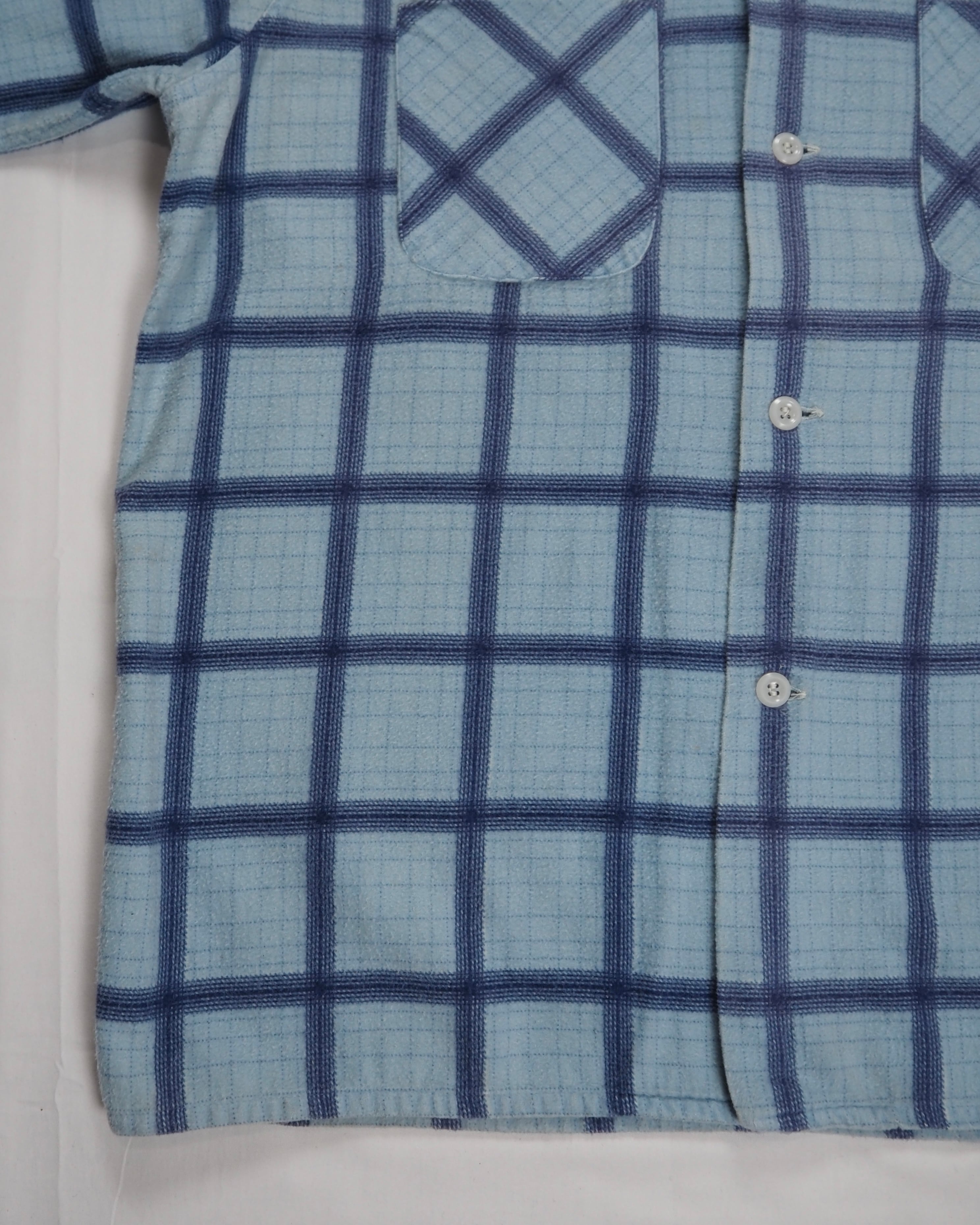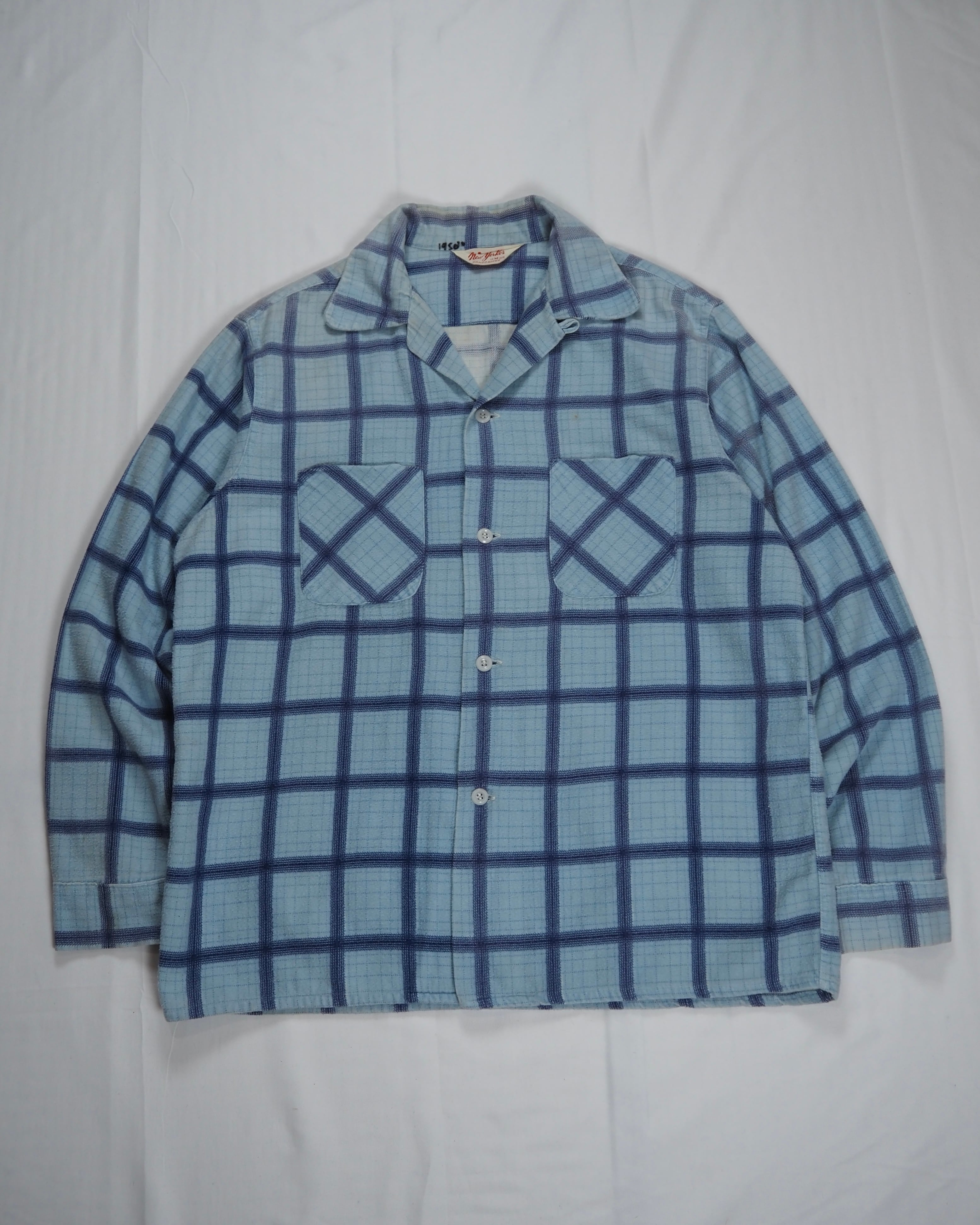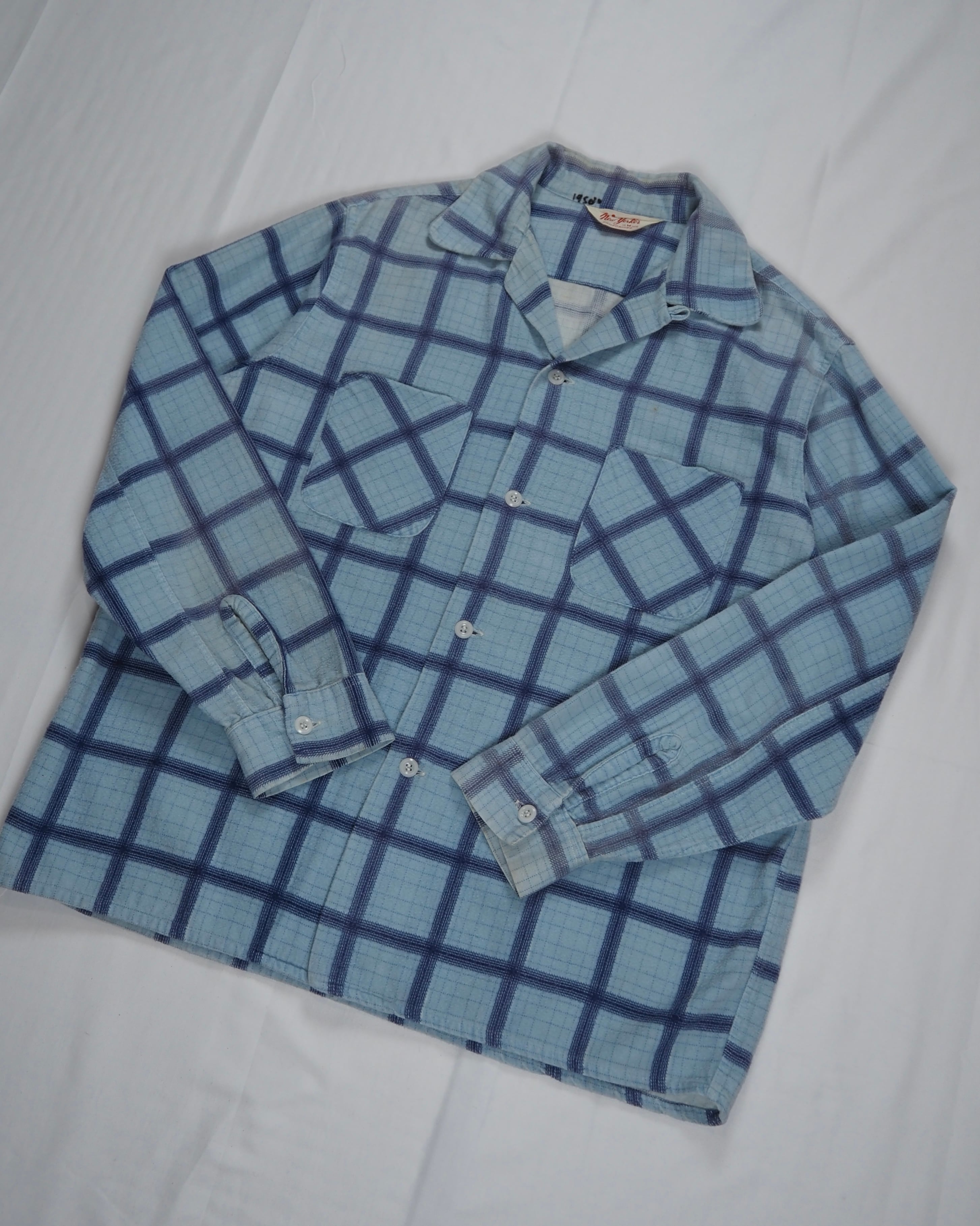 【5/6(水) 20:00入荷】50’s プリントフランネルシャツ ライトブルー Mサイズ